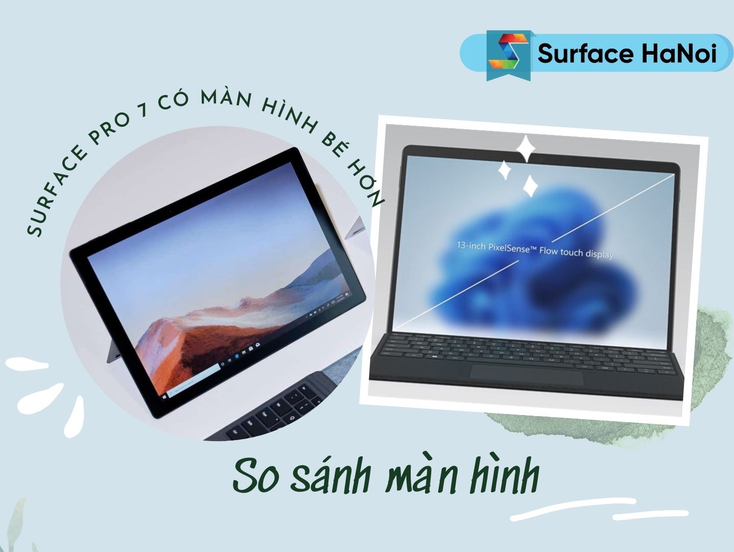 Nếu đặt hai máy ở cạnh nhau, bạn sẽ dễ dàng nhận thấy phần viền màn hình của chiếc Pro 8 đã được thu nhỏ lại hơn so với chiếc Pro 7 tới 11%. Điều này giúp cho chiếc Surface Pro 8 có một vẻ ngoài hiện đại hơn rất nhiều so với phần viền có phần hơi bảo thủ trên chiếc Pro 7. Không những chiếc, chiếc Surface 8 Pro có kích thước màn hình 13 inch, với độ phân giải 2880 x 1920 pixel cũng có phần nhỉnh hơn một chút so với màn hình 12.3 inch, độ phân giải 2736 x 1824 của chiếc Pro 7. Cả hai máy đều có mật độ điểm ảnh 267PPI, nên được đánh giá cao về độ phân giải màn hình, cho hình ảnh sống động, sắc nét dưới nhiều góc độ.