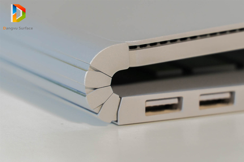 Surface Book 1 gây ấn tượng với người dùng bởi thiết kế độc đáo sáng tạo. Toàn bộ phần vỏ máy được sản xuất bằng kim loại nhôm Magie. Đặc biệt nhất là phần bản lề, đúng với tên gọi Surface Book, bản lề được thiết kế kết nối phim và màn hình giống như cuốn sách.