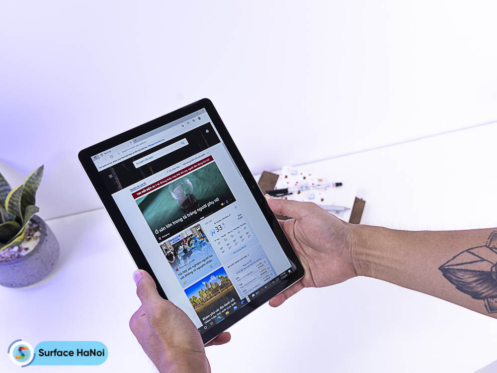 Những người dùng hay Surface Hanoi thường gọi dòng Surface Go là một cuốn số 2.0. Nếu biết cách tận dụng triệt để mọi tính năng thì chiếc máy này hoàn toàn thay thế được những tài liệu hay sổ sách bằng giấy. Vậy trong công việc hay học tập thì người dùng chỉ việc mang mỗi máy theo, điều này tiện lợi còn gì bằng.