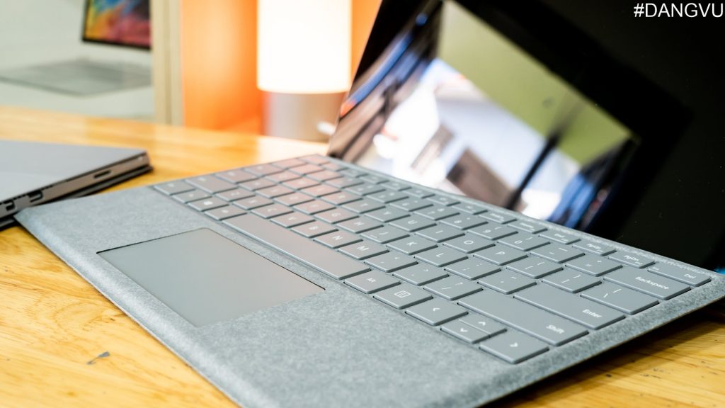 Surface Pro 6 hỗ trợ phím vải Alcantara giống như Surface Pro 5. Đây là thiết kế cao cấp của Microsoft, thể hiện sự sang trọng và hiện đại cho người dùng. Ngoài ra khi mua Surface Pro 6 tại Đăng Vũ, khách hàng sẽ được tặng thêm một bàn phím của Surface Pro 6. Nếu mua máy mới bạn sẽ phải bỏ ra khoảng 3 triệu để có chiếc bàn phím này.