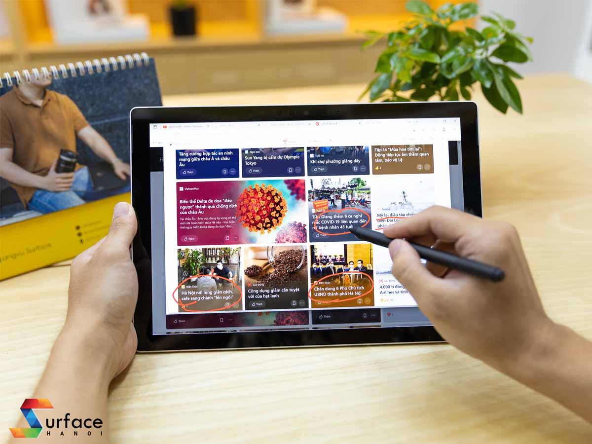 Một chiếc máy màn hình đẹp còn có thể tận dụng phục vụ cho tác vụ làm đồ họa nữa. Máy Surface Pro 7 Plus có tích hợp cảm ứng đa điểm kèm theo phụ kiện bút Surface Pen. Bộ công cụ máy và bút của Microsoft mang lại trải nghiệm vẽ rất thật, hoàn toàn phù hợp dành cho người dùng có nhu cầu vẽ vời.