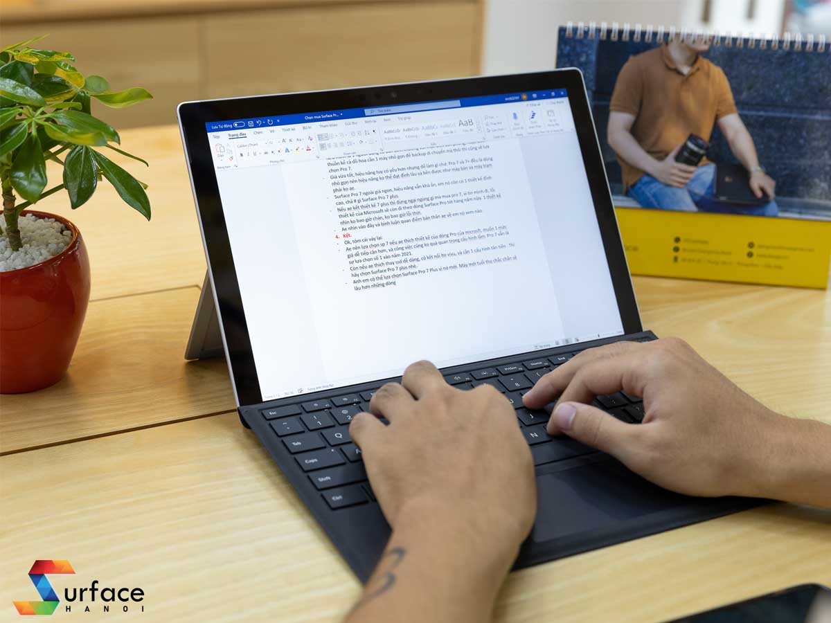 Còn thời lượng Pin sử dụng thực tế của máy chắc chắn sẽ khác biệt hoàn toàn so với nhà sản xuất quảng cáo. Surface Pro 7+ là dòng máy sở hữu nhiều thông số cao cấp cho nên hiệu năng tiêu thụ sẽ cao hơn những dòng máy bình thường. Qua quá trình thử nghiệm sử dụng, đội ngũ Surfacehanoi kết luận thiết bị này chạy được khoảng 6-8 tiếng. Bạn đánh giá thế nào về Surface Pro 7 Plus?