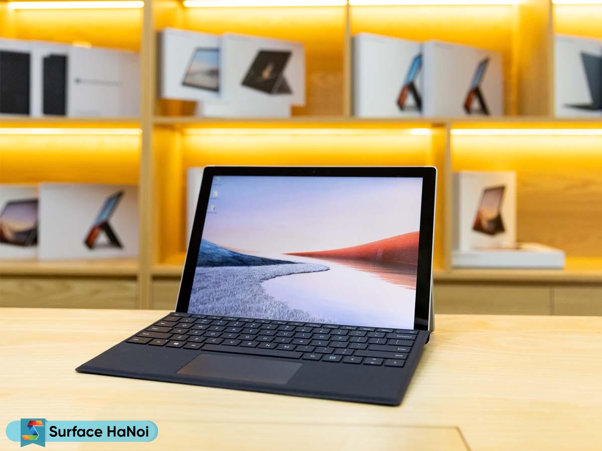 Một phiên bản máy cao cấp sẽ là lựa chọn thích hợp để phục vụ người dùng trong thời gian dài Hiệu năng từ con Chip i7-1165G7 mang lại cho Surface Pro 7 Plus một sức mạnh phi thường. Tốc độ hoạt động từ con Chip đời mới khác biệt hơn hẳn những sản phẩm về trước. Đội ngũ Surfacehanoi đã trải nghiệm trực tiếp Surface Pro 7 Plus, máy tương tác ứng dụng cực nhanh, không có tý độ trễ nào. Thiết kế Surface Pro 7 PlusSurface Pro 7 Plus thuộc trong phân khúc Surface Pro nên chắc người dùng nào biết về dòng máy này cũng hình dung ra được thiết kế. Một chiếc màn hình chạy Windows 10 có chân bản lè và bàn phím tháo rời. Thiết kế này đã làm nên thương hiệu của sản phẩm máy tính Surface Microsoft. Nếu bạn muốn trải nghiệm thực tế Surface Pro 7 Plus hay bất kì sản phẩm Surface Microsoft nào khác thì có thể ghé qua cửa hàng Surfacehanoi. Bộ nhớ SSD tháo rờiĐây là điểm khác biệt của Surface Pro 7 Plus so với các đời máy trước cùng thuộc phân khúc. Trên sản phẩm Surface Pro ra mắt năm 2021 của mình, Microsoft thiết kế bố trí bộ nhớ của máy ra phía bên ngoài. Giúp người dùng có thể dễ dàng tháo rời và nâng cấp.