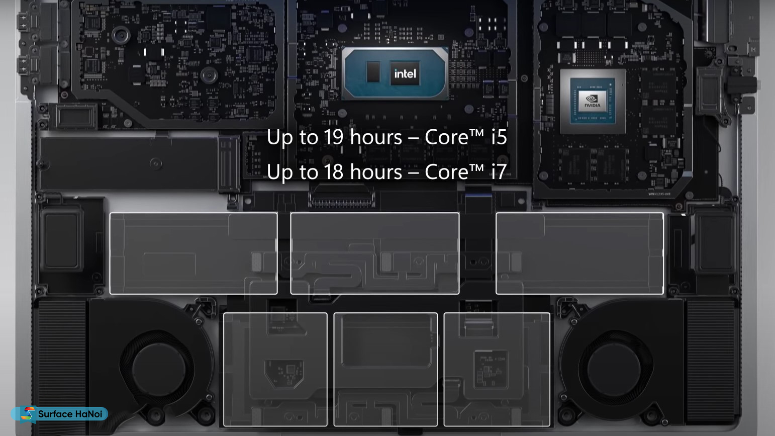 Thời lượng pin là điểm mạnh trên chiếc Surface thế hệ mới. Theo công bố từ Microsoft, thời lượng pin đối với phiên bản Core i5 là 19h. Phiên bản Core i7 sẽ là 18h. Thực tế khi Surfacehanoi sử dụng, thời gian sử dụng sẽ có sự chênh lệch tuỳ vào các tác vụ của người dùng. Tuy nhiên, chênh lệch chỉ rất nhỏ, bạn hoàn toàn có thể sử dụng máy trong cả một ngày dài.