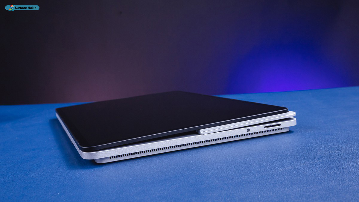 Bên cạnh đó, thế hệ Surface mới có thể tương thích với Surface Slim Pen 2. Không cần tách bàn phím để lấy bút, đến dòng sản phẩm này, Surface Pen sẽ được cất gọn ở dưới đáy máy. Đây là một điểm mà Surfacehanoi vô cùng hài lòng.