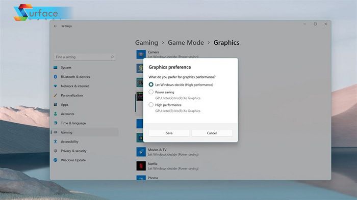 Tiếp theo, bạn chỉ cần điều chỉnh lại card đồ họa game. Để điều chỉnh, bạn vào “Graphics” -> chọn game cần điều chỉnh -> chọn “Option” -> chọn “Card đồ họa mạnh mẽ nhất”.